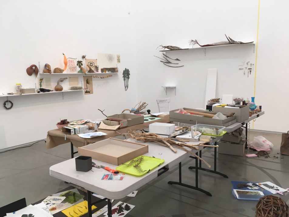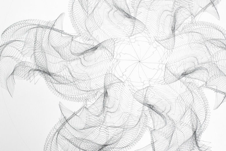 - Konturlinien von Pflanzenelementen in geometrischen Systemen (Bleistiftzeichnungen)- Konturen von Baumblättern- Rauminstallation- Fassade